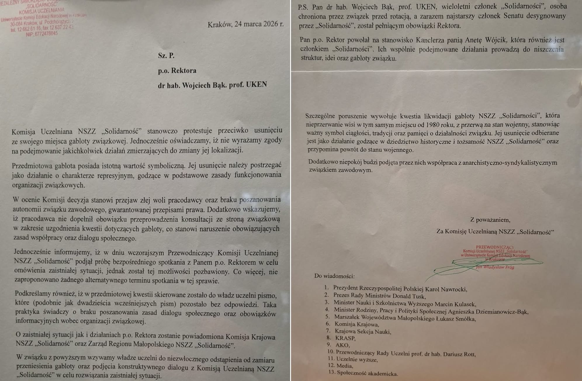 Trwa komiczno-heroiczny bój przewodniczącego uczelnianej „Solidarności” o lokalizację gabloty związkowej. W celach rozrywkowych postanowiliśmy przyjrzeć się oświadczeniu, jakie zawisło właśnie w rzeczonej gablocie.